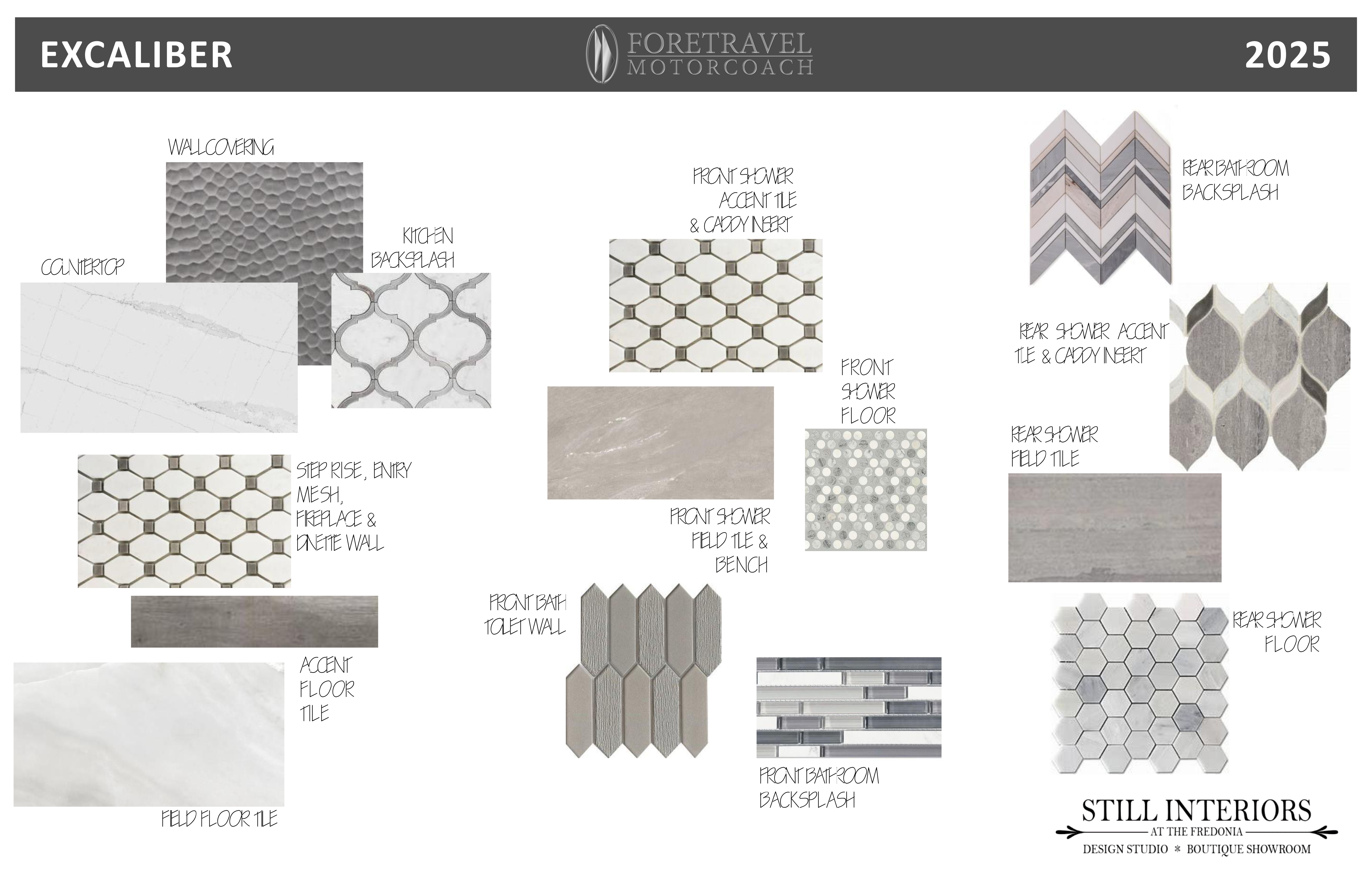 Five Professionally Designed Interior Selections with Three Custom Wood Cabinetry Options (Natural Walnut, African Mahogany, and Polished Stone)