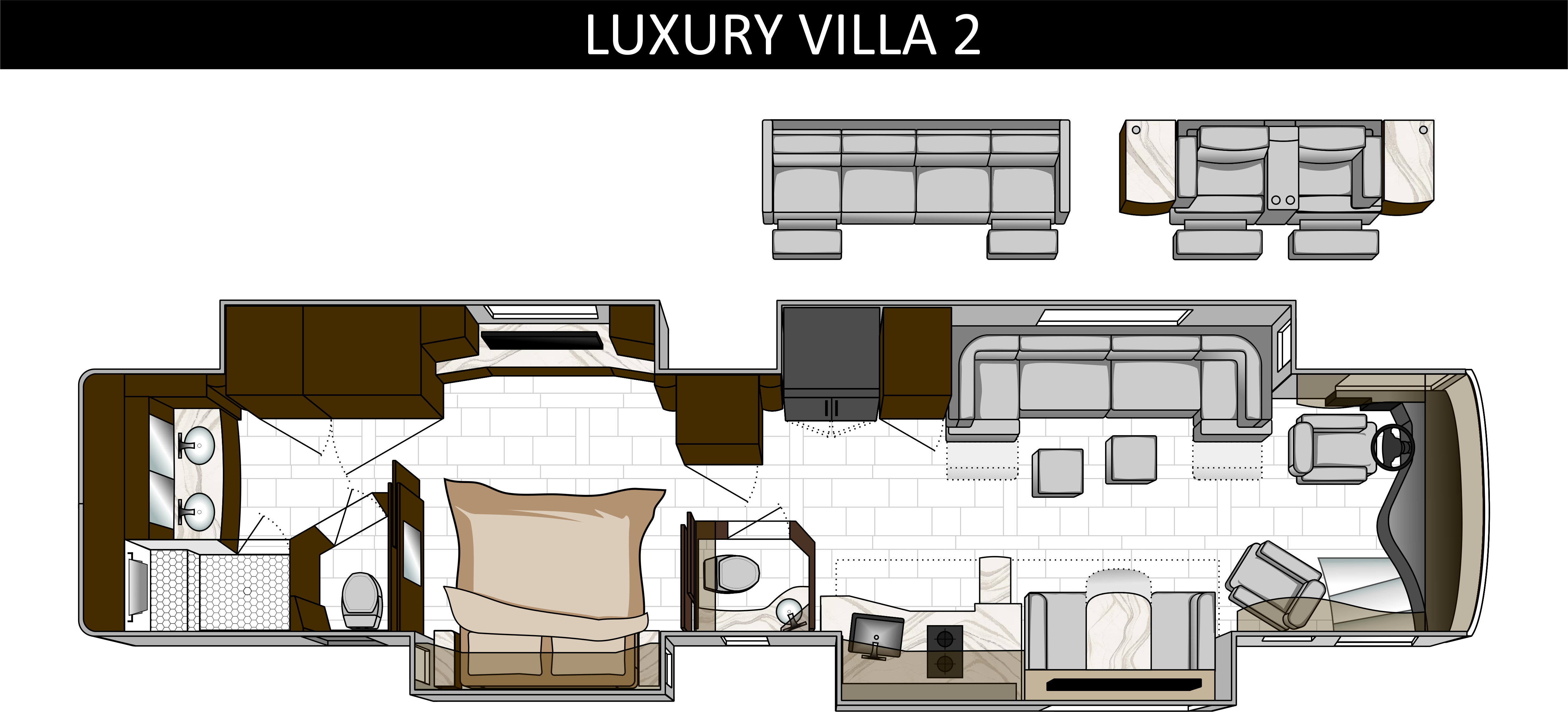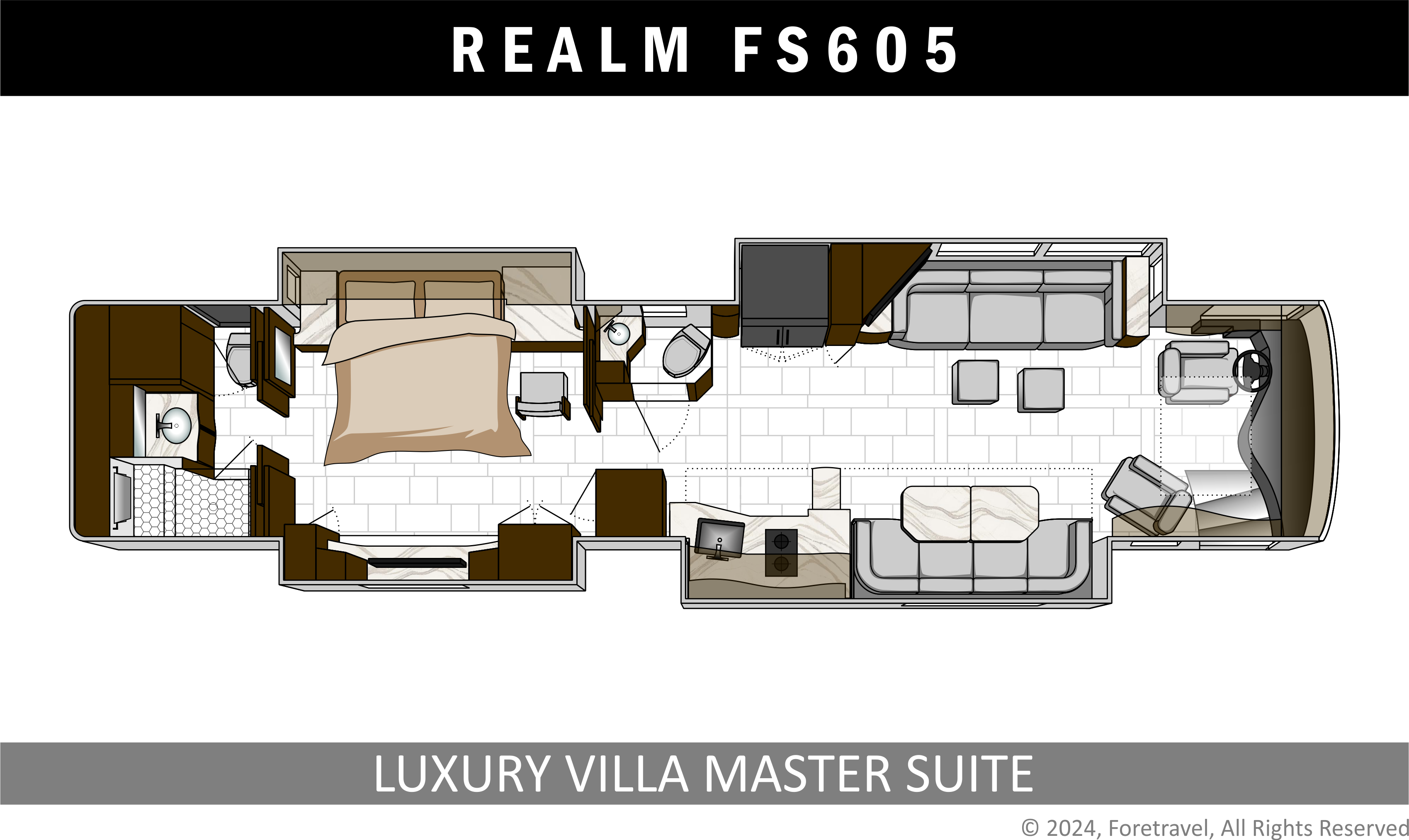 The Realm's Cutting-Edge Design of available floor plans sets it apart from every other luxury motor coach on the market today. The attention to functionality and livability in each Foretravel Realm will leave you asking why you waited until now.